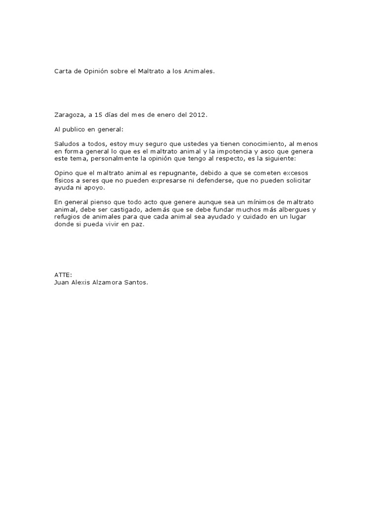 Carta De Opinion De Maltrato Animal I Carta De