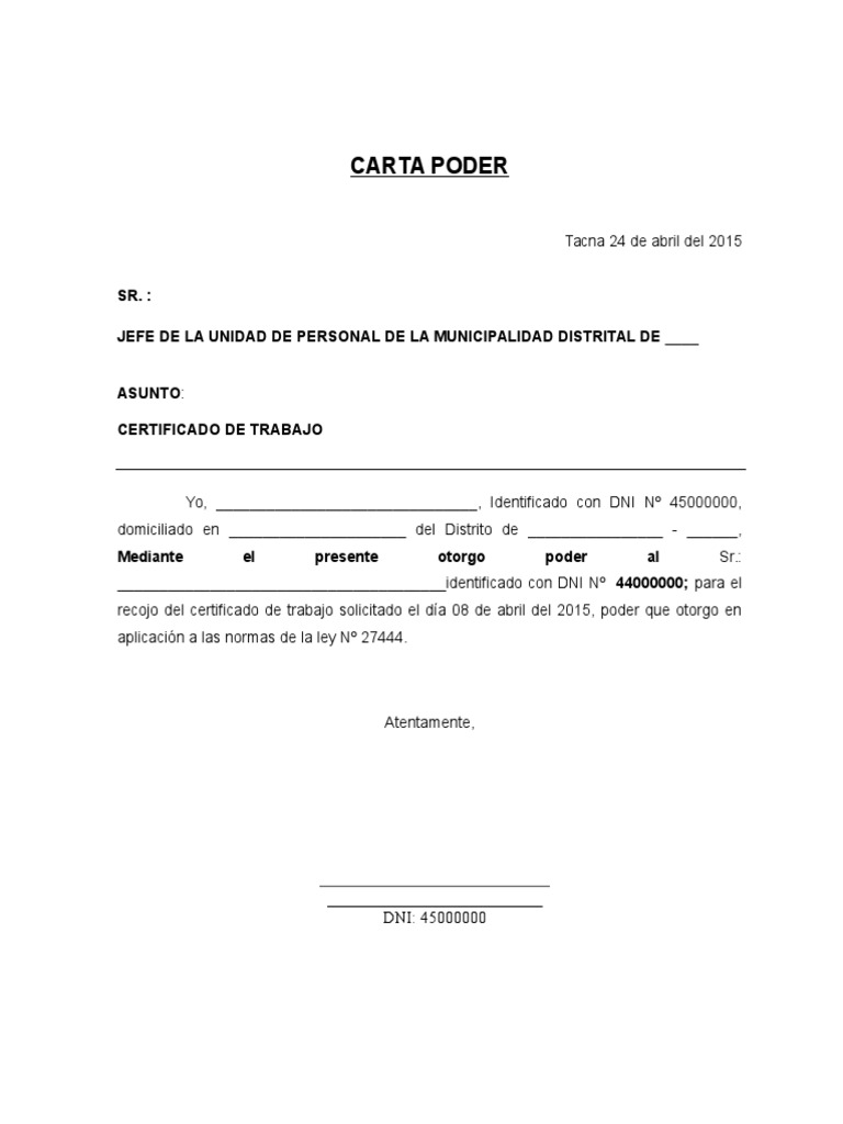 Modelo De Carta Poder Simple Para Tramites Documentarios Peru