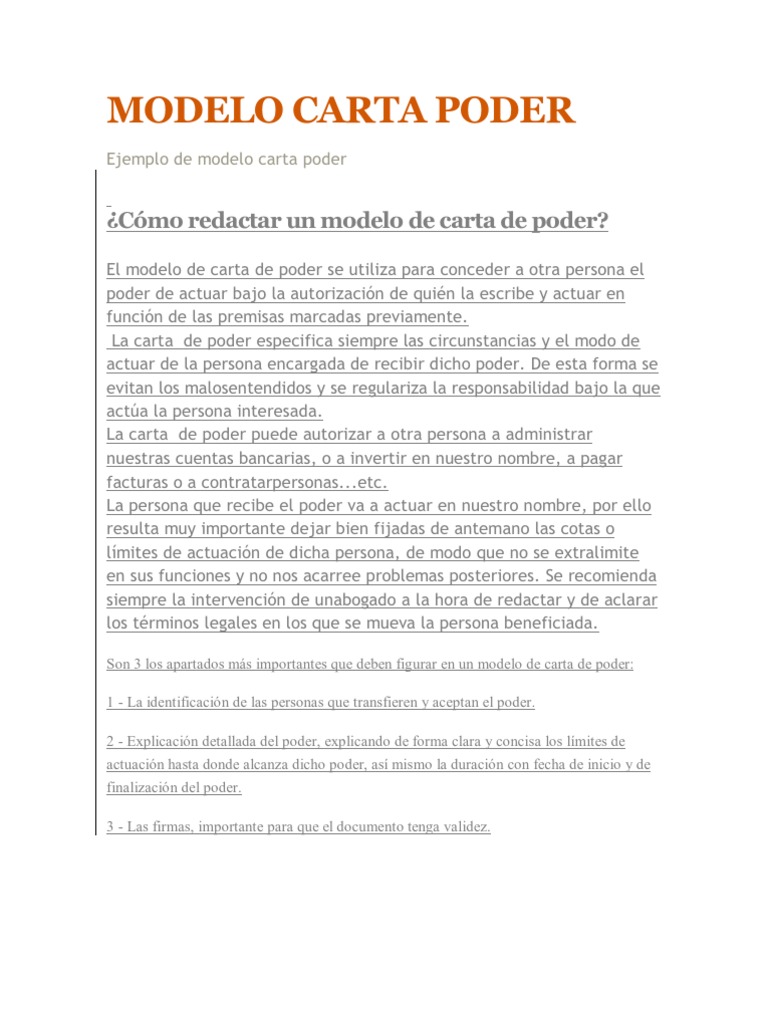 Usos De La Carta Poder Formatos Y Ejemplos Word Para Imprimir