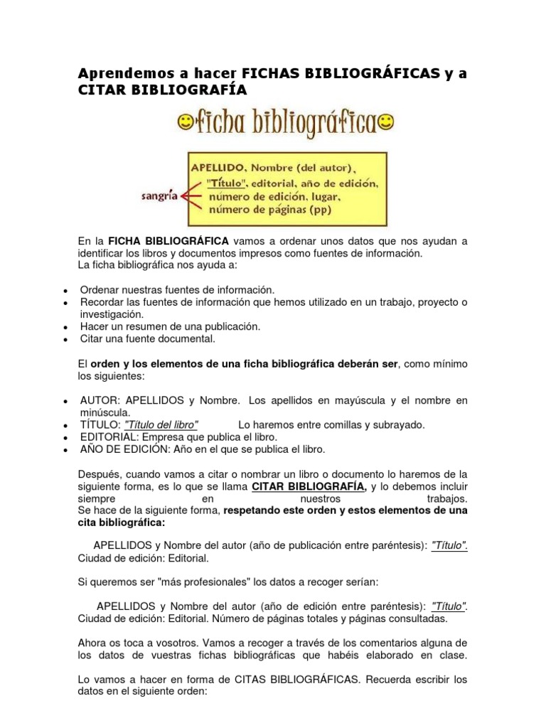 Aprendemos A Hacer Fichas Bibliograficas Y A Citar Bibliografia