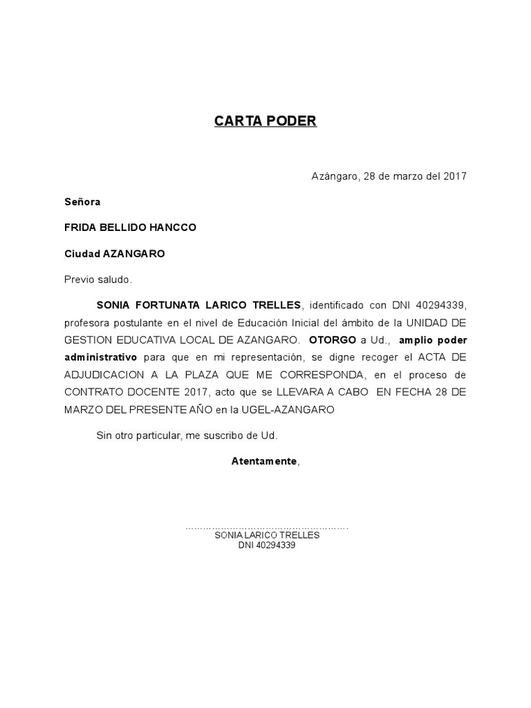 Carta Poder Para Contrato Docente 2017 Doc