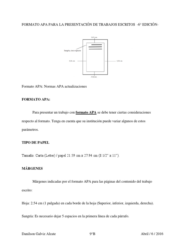Formato Apa Para La Presentacion De Trabajos Escritos Danilson