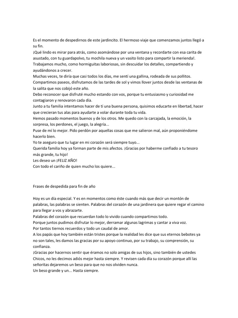 Palabras De Despedida Para Los Egresados Del Jardin Maestra