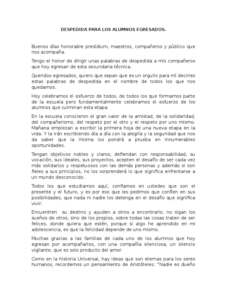 Tu Imagen Y Lectura Palabras De Despedida A Los Alumnos De