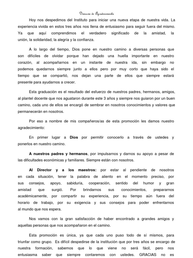 Discurso De Agradecimiento De La Graduacion Felicidad Y Autoayuda