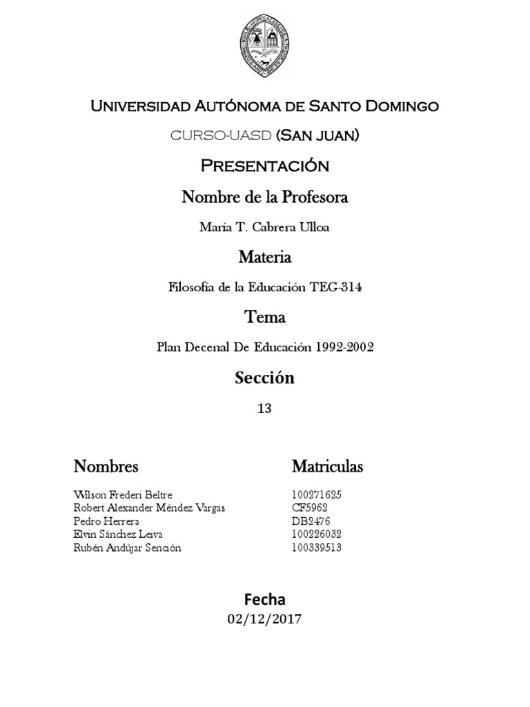 Resultado De Imagen Para Hoja De Presentacion De La Uasd
