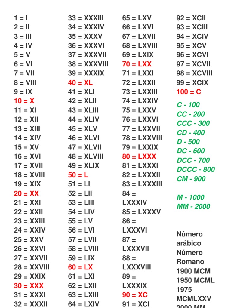 25403796 Los Numeros Romanos Del 1 Al 2000
