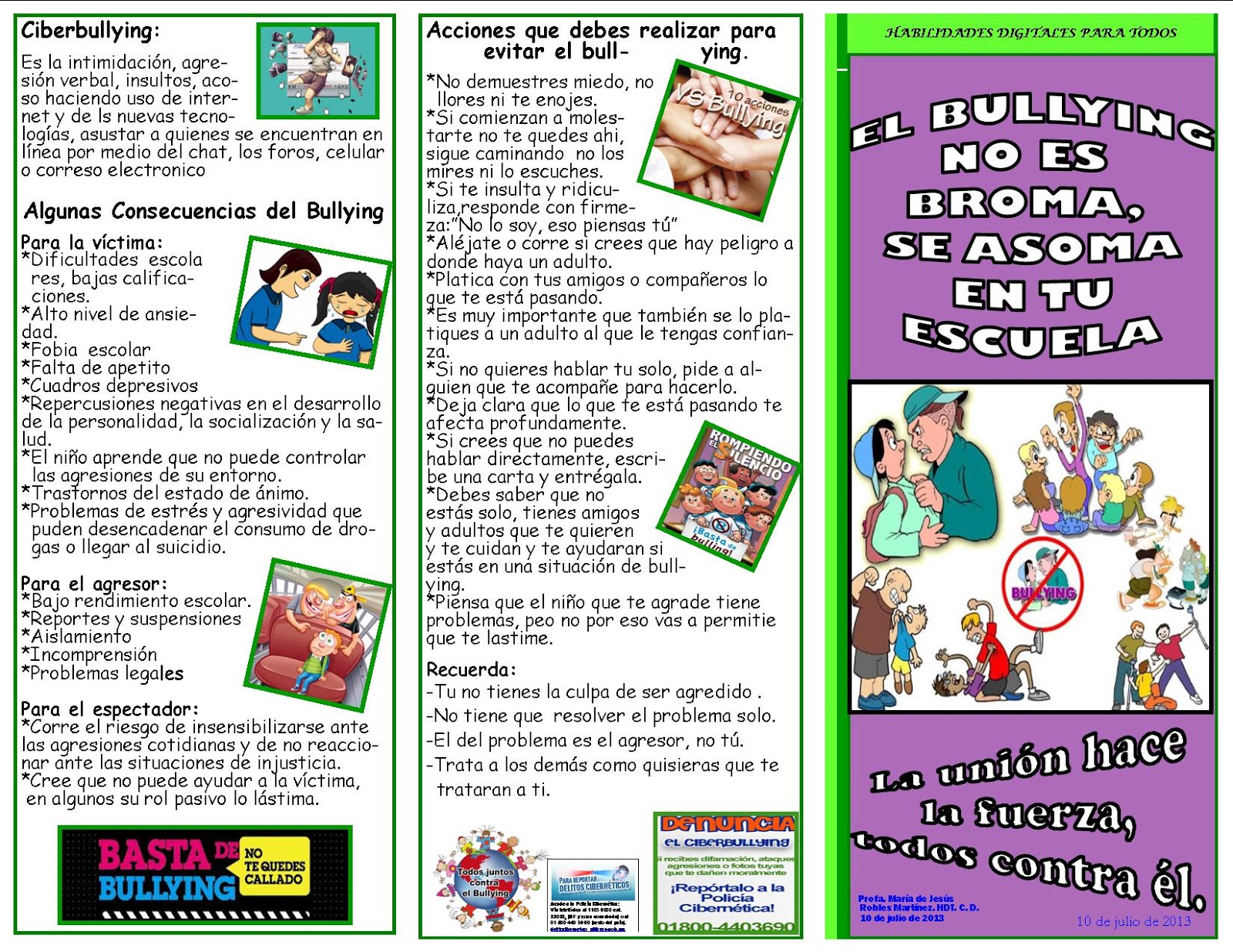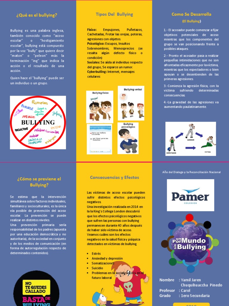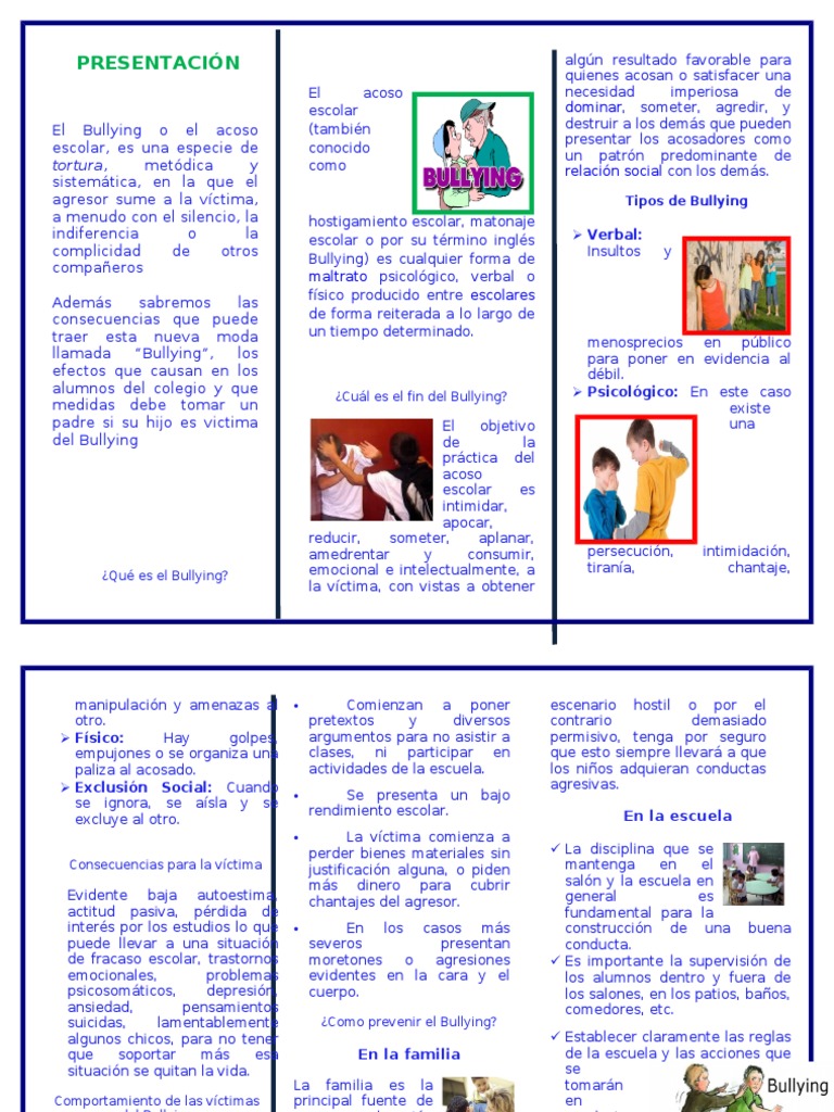 Triptico Del Bullying Hecho En Word Descarga Gratis