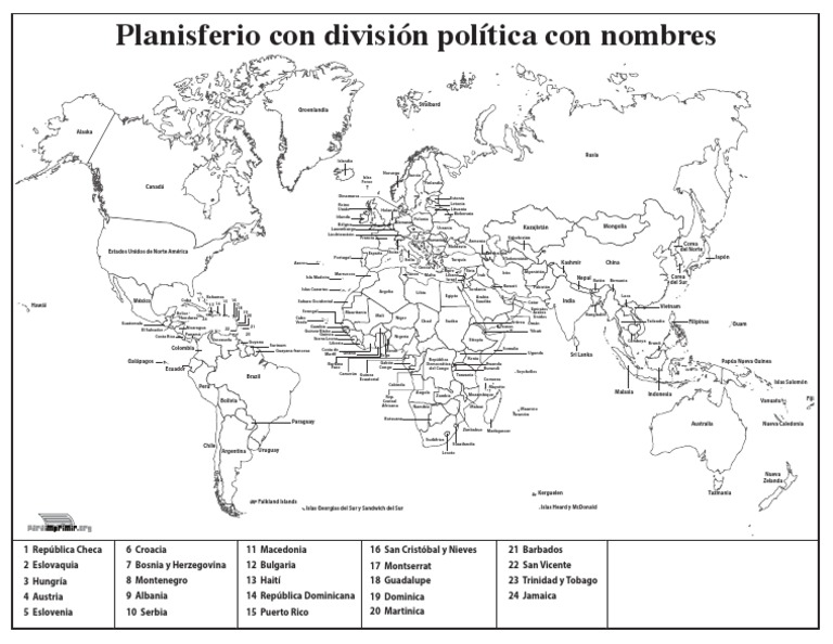 Mapa Mundi Con Division Politica Con Nombres Para Imprimir Pdf