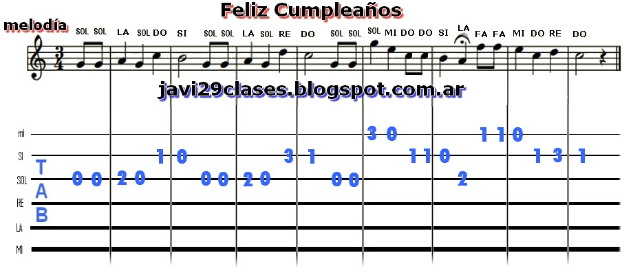 Notas De Guitarra Para Principiantes Feliz Cumpleaños