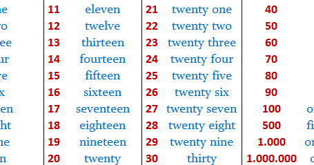 Numeros De Ingles Del 1 Al 10000 Imagui
