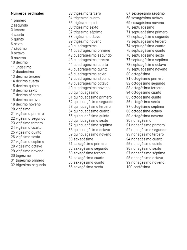 Numeros Ordinales Del 1 Al 100 En Ingles Y Espanol Imagui